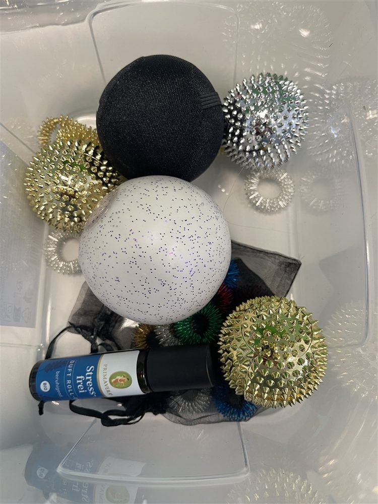 Bereits bei den aktuellen Abiturprüfungen kamen die Boxen zum Einsatz – mit durchweg positivem Feedback. Mehrere Schüler*innen nutzten die Materialien, um sich vor und während der Prüfung zu beruhigen. Es war schön zu sehen, wie die einfachen Hilfsmittel den Schüler*innen geholfen haben, mit der Anspannung besser umzugehen.